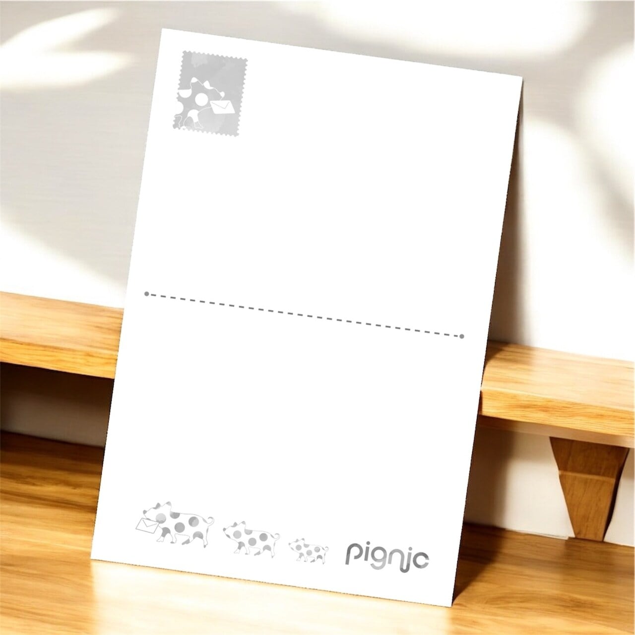 pignicのポストカードは、見る人全てに笑顔を届けたいという想いから、一枚一枚丁寧にデザインされています。日常のちょっとした贈り物や、お礼状、またはご自身の癒しタイムにと、様々なシーンでご活用いただけるアイテムです。可愛いブタちゃんたちを通じて、あなたの心をほっこりさせてみませんか?